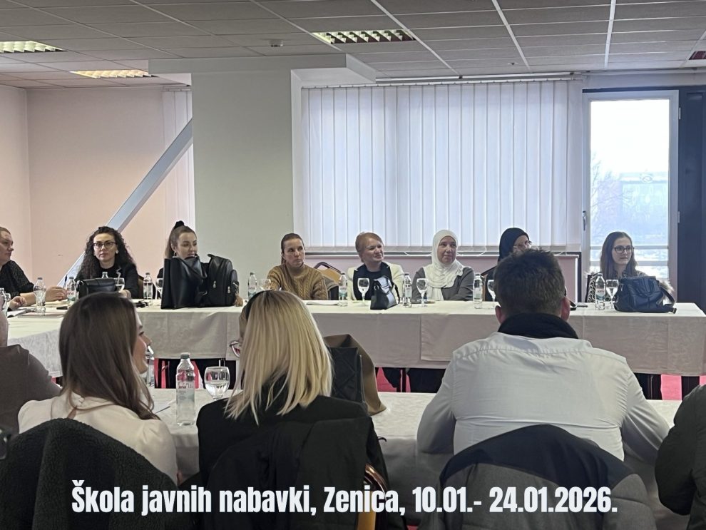 Škola javnih nabavki realizovana je tokom januara 2026. godine, u trajanju od sedam (7) dana, kroz kombinaciju cjelodnevnih i kraćih edukativnih modula. Program je bio usmjeren na sticanje konkretnih, praktičnih i odmah primjenjivih znanja iz oblasti javnih nabavki, s posebnim fokusom na primjenu Zakona o javnim nabavkama iz perspektive ponuđača – privrednih subjekata.