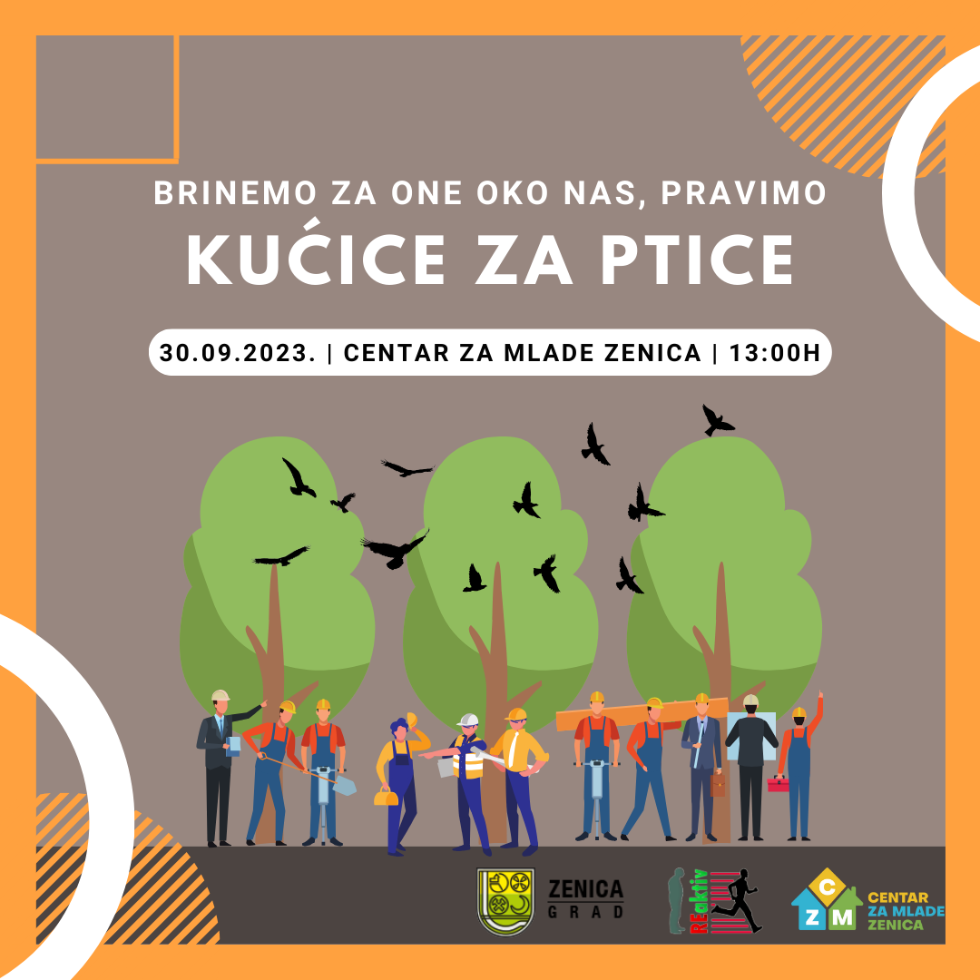 S obzirom da nam se bliže hladni dani, a mi brinemo i za one oko nas, pozivamo sve mlade da nam se pridruže u Centru za mlade Zenica, na dan 30.09. (subota), kako bismo napravili kućice za ptice i postavili ih u parku iza Centra. Aktivnost počinje u 13:00h. Trudimo se da svoju brigu prema zajednici pružimo svima, a to ovaj put uključuje nove i tople domove za naše leteće prijatelje. Potrebno je da učesnici ponesu kreativnost i dobru volju, mi smo pripremili sve ostalo!