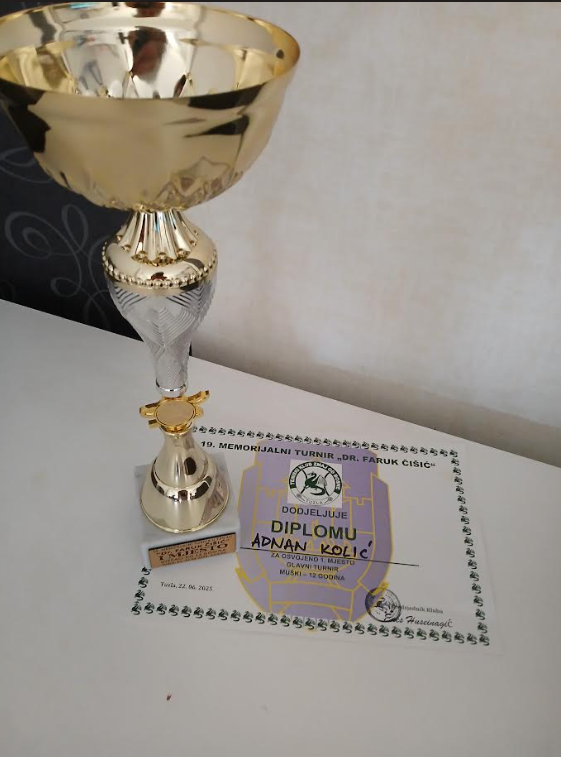 Adnan Kolić, član Teniskog kluba Mladost iz Zenice i vodeći teniser na rang-listi Teniskog saveza BiH u kategoriji do 12 godina, još jednom je potvrdio svoj kvalitet osvojivši prvo mjesto na 19. Memorijalnom turniru “dr Faruk Čišić”, održanom proteklog vikenda, 21. i 22. juna 2025. godine.