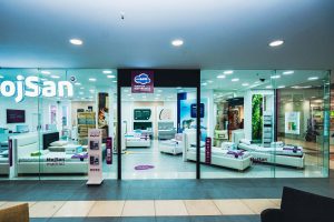 Kontinuitet razvoja i prezentacije vlastitih proizvoda brand MojSan, između ostalog, gradi kroz vlastiti koncept maloprodaje MojSan SHOP u cijeloj regiji. Sistemi za spavanje koji uključuju krevete, madrace, jastuke te posteljni program kao posebni segmenti roba obzirom na učestalost kupovine zahtjevaju posebnu pažnju pri odabiru što kao bitan momenat ističu u brandu MojSan.