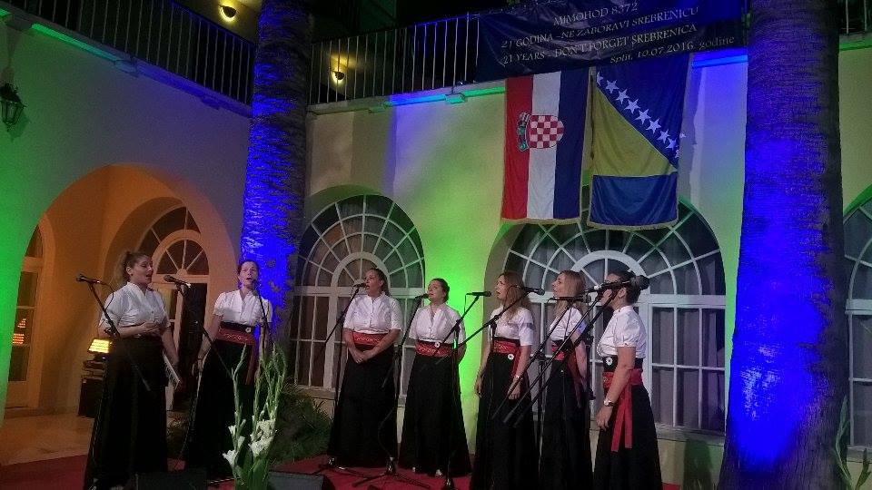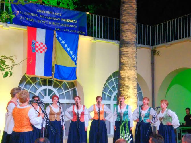 Tokom večeri u splitskoj Villi Dalmacija upriličen je koncert “Klape Srebrenici i Vukovaru”, u sklopu obilježavanja 21 godišnjice od Genocida u Srebrenici.Na koncertu klapske muzike učestvovale su ženska klapa KUD Salona iz Solina, muška klapa Kolapjani iz Siska, mješovita klapa Basca iz Baške Vode, ženska klapa Neverin iz Kaštel Lukšića i muška klapa KUDŽ Filip Dević iz Splita (Republika Hrvatska) i ženska klapa Diva iz Širokog Brijega (BiH).