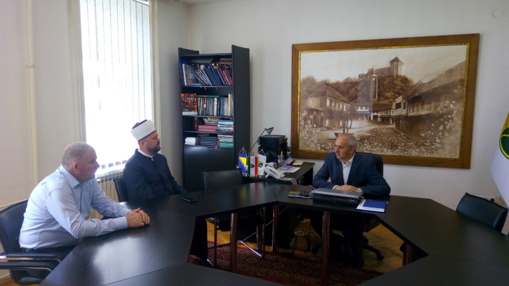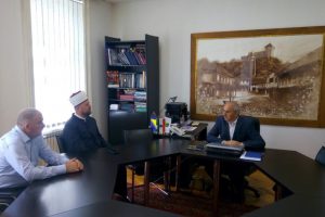 Muftija zenički posjetio Medžlis i Općinu Tešanj – U ponedjeljak 02. 09. 2019. godine muftija zenički hfz. dr. Mevludin ef. Dizdarević posjetio je Medžlis IZ Tešanj i Općinu Tešanj gdje se susreo sa glavnim imamom mr. Fuad ef. Omerbašićem, predsjednikom medžlisa gosp. Zehrudinom Kruškom, te načelnikom Općine gosp. Suadom Huskićem.