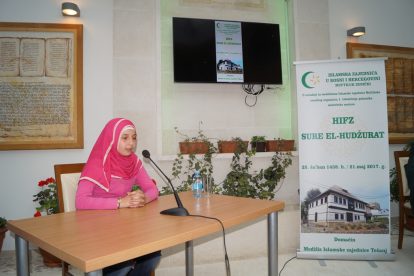Drugo mjesto osvojila je Halida Jusić iz Zenice, mekteb Sejmen, muallim hfz. dr. Safet ef. Husejnović.
