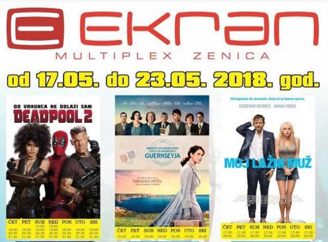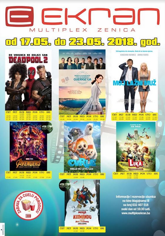 Multiplex Ekran najava – Nova filmska sedmica 15. i 16. maja donosi pretpremijeru nastavaka akcione komedije “DEADPOLL 2”, a od četvrtka 17. maja ne propustite pogledati i romantičnu dramu “DRUŠTVO ZA KNJIŽEVNOST I PITU OD KROMPIRA S GUERNSEYJA” i animiranu 3D avanturu za najmlađe MISIJA KATMANDU (3D)
