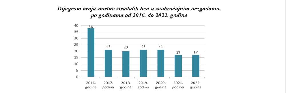 Dijagram broja smrtno stradalih lica u saobraćajnim nezgodama,