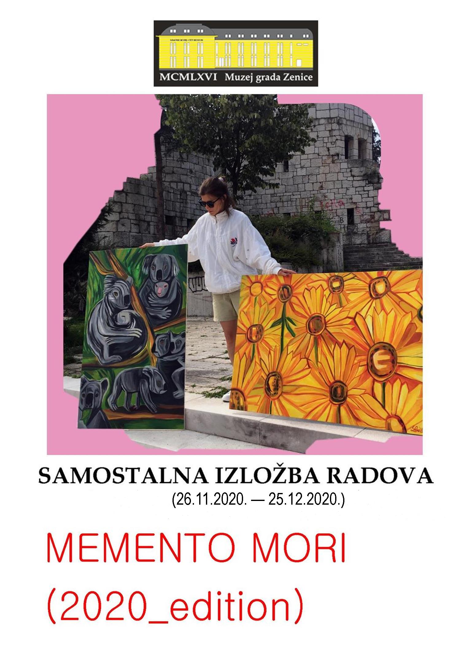 Posjetioci Muzeja Grada Zenica već nekoliko dana mogu uživati u izložbi MEMENTO MORI (2020_EDITION). izložba autorice Lane Miličić je otvorena za posjetioce od 26. novembra do 25. decembra, a prati rad i život kreativca/ umjetnika i bilo kojeg drugog pojedinca tokom pandemije.