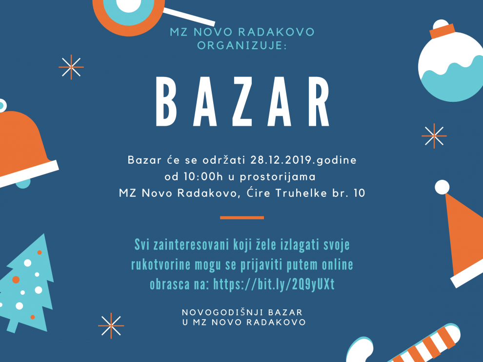 MZ Novo Radakovo organizuje Bazar 28.12.2019. godine od 10:00h u prostorijama MZ Novo Radakovo.