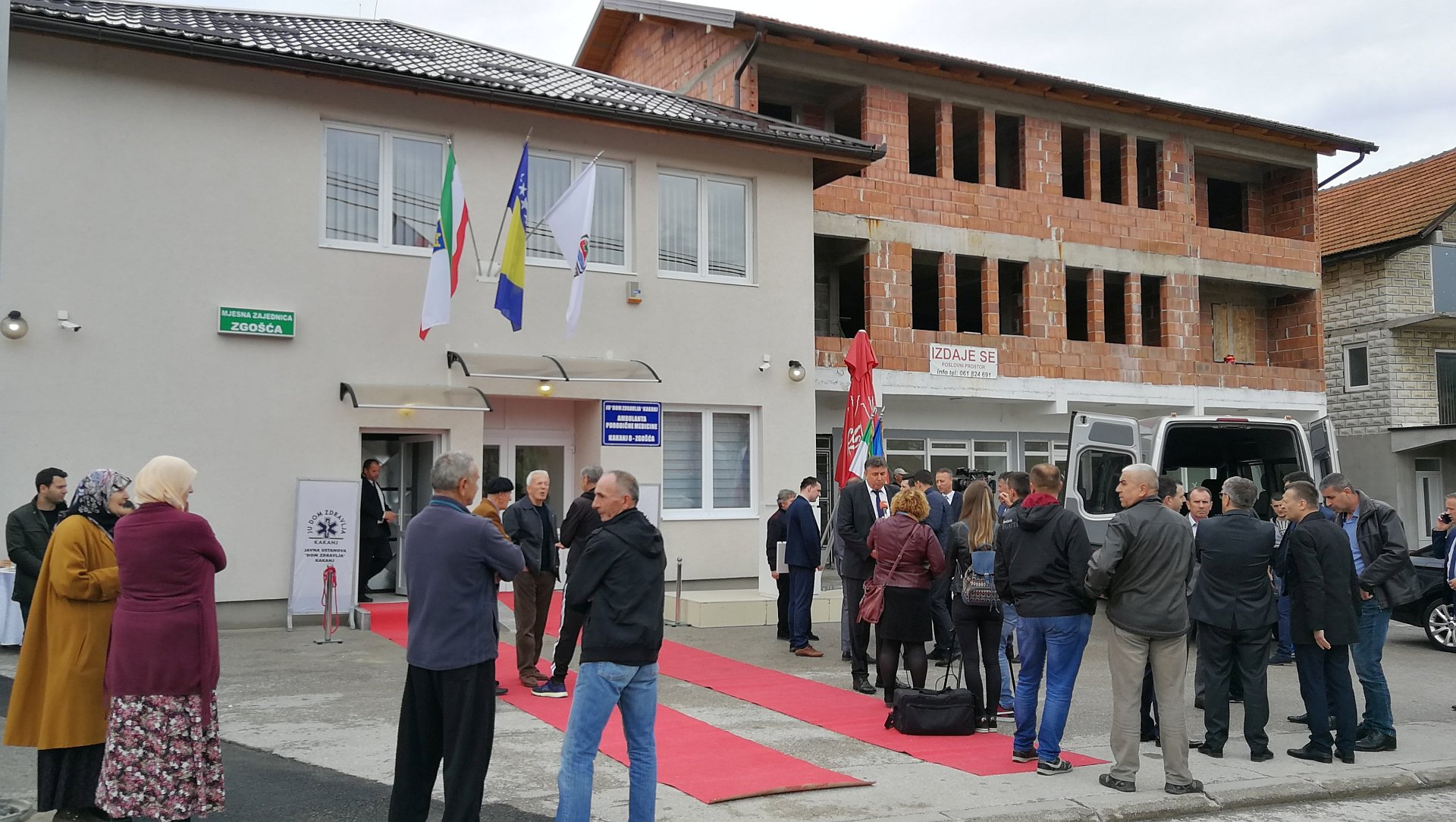 Svečano otvorenje prostorija ambulante i MZ Zgošća upriličeno je u okviru obilježavanja 08. aprila – Dana oslobođenja Kaknja i 15. aprila – Dana općine Kakanj i Dana Armije RBiH, uz prisustvo članova Vlade Zeničko-dobojskog kantona – ministra zdravstva Adnana Jupića, ministra unutrašnjih poslova Darija Pekića, ministra poljoprivrede, šumarstva i vodoprivrede Mirnesa Bašića i ministra prostornog uređenja, prometa i komunikacija i zaštite okoliša Arnela Isaka, kao i predstavnika Vijeća ministara BiH, Općine Kakanj, Doma zdravlja i građana.