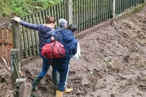 Kako javlja reporter N1 Semir Mustafić, mještanka Stare Nemile Fadila Grabus, njen sin i porodica odsječeni su od jutros od svoje kuće zbog muljnog nanosa prouzrokovanog poplavama.