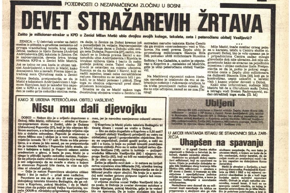 Mile Matić, 30-godišnji policajac, koji je radio kao stražar u zloglasnom zatvoru u Zenici, svoj je suludi pohod započeo 26. februara. U srijedu, ujutro Matić je, iz KPD Zenica, ukrao dva pištolja i automatsku pušku sa municijom. Istog je dana počinio i prvo, u krvavom nizu ubistava, s njegovim potpisom.