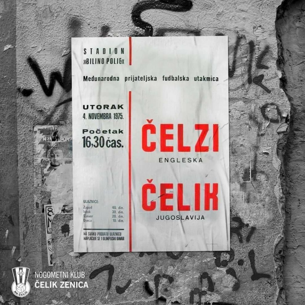 Na današnji dan, Prije 47 godina, 4. novembra 1975., na Bilinom polju snage su odmjerili londonski Chelsea i Čelik. Bio je utorak, rezultat 4:4, a utakmica je prekinuta u 78. minuti radi tuče navijača, ali i igrača. Prije tog meča Čelik je pobjeđivao Cataniu (Italija), Diosgyor (Mađarska), MTK Budapest (Mađarska), Austria Salzburg (Austrija), dva puta Spartu iz Praga (Češka Republika), Honved Budapest (Mađarska), Fiorentinu (Italija), LASK iz Linza (Austrija), dva puta Zbrojovku iz Brna (Češka Republika) i igrao neriješeno sa Tatabanjom iz Mađarske. Nakon neriješenog sa Chelseajem, nogometaši Čelika imaju ponovno dobar međunarodni niz sa pobjedama nad Debrecenom (Mađarska), Chebom (Češka Republika), neriješeno sa Udineseom (Italija), onda Denizlijem (Turska) i belgijskim Genkom.