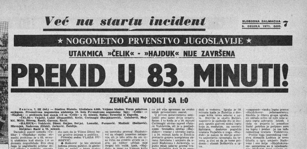 Odluka zagrebačkog arbitra razbjesnila je igrače Čelika i izazvala “ludnicu” među navijačima “Crveno-crnih”, ali je uprava zeničkog kluba u saradnji s “narodnom milicijom” uspjela osigurati Splićane i sudijsku trojku da sigurno napuste Blatušu.