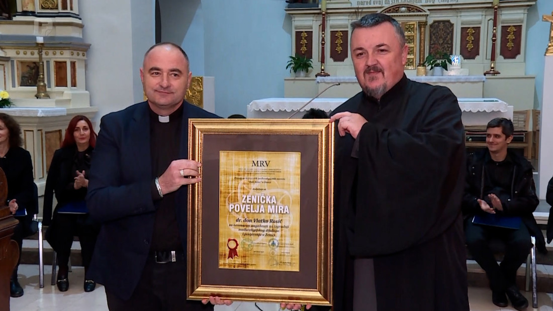 Potom je tradicionalna Zeničku povelju mira uručio dr. vlč. Vlatku Rosiću, koji je do ove godine obnašao službu ravnatelja Katoličkog školskog centra Sv. Pavao u Zenici.