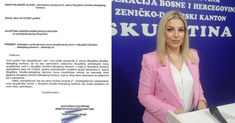 Samostalna zastupnica Naida Delibašić – Alagić, koja je prethodno bila članica Kluba stranke BHI-KF, obavjestila je Kolegij Skupštine da se pridružila aktuelnoj većini, te da se “na nju može računati kao 21. glas aktuelne većine”.