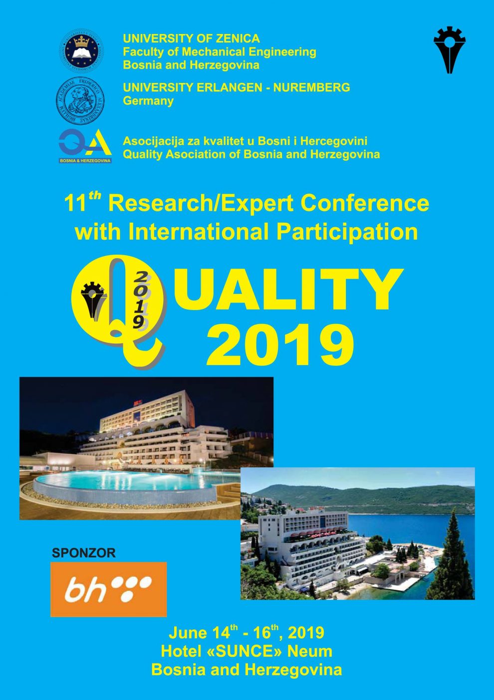 NAJAVA 11. NAUČNO-STRUČNE KONFERENCIJE QUALITY 2019  – Neum 14.-16. juni 2019. – Hotel SUNCE – Mašinski fakultet Univerziteta u Zenici po jedanaesti put organizuje Naučno-stručni skup sa međunarodnim učešćem “QUALITY 2019”, koji će se održati u periodu od 14. do 16. juna 2019. godine u Neumu u hotelu “SUNCE”.