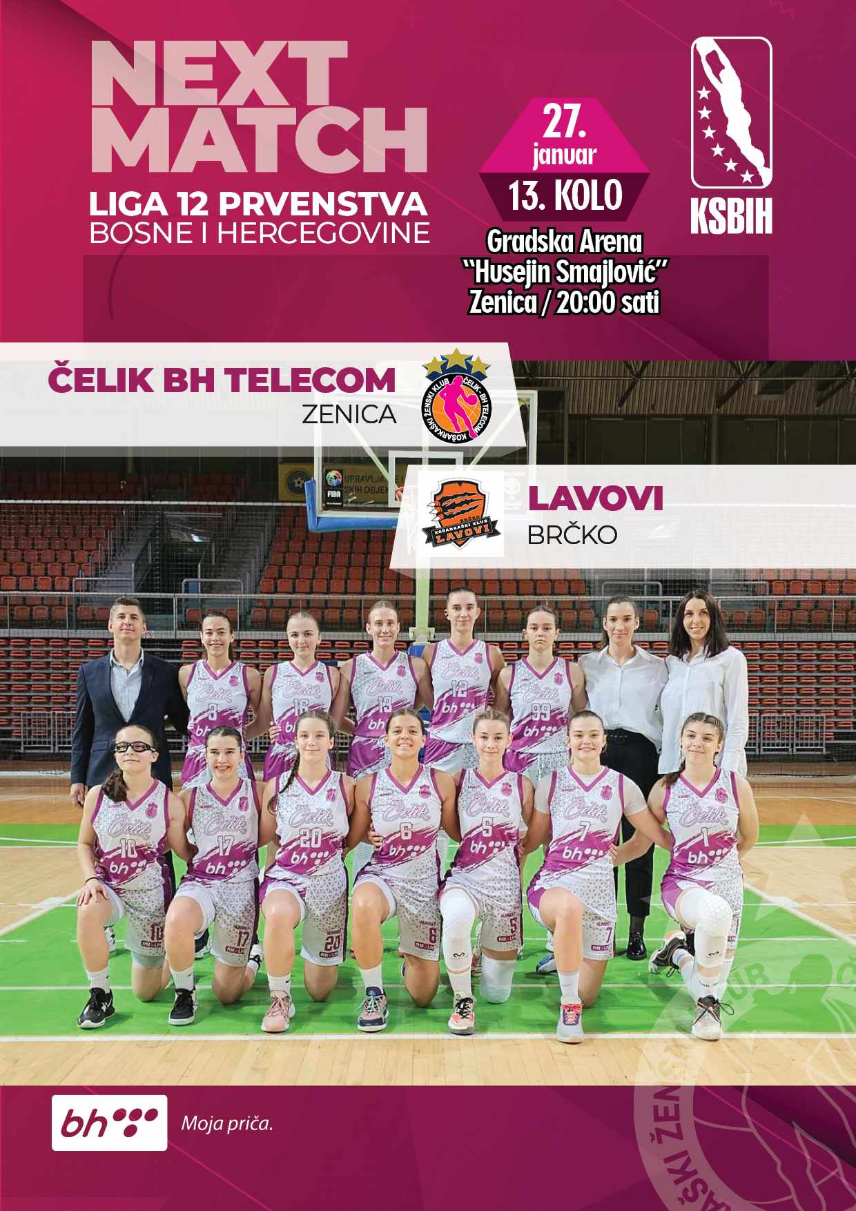 KŽK Čelik BH Telecom je domaćin ekipi KK Lavovi iz Brčkog. Čelik je na omjeru od 10 pobjeda i 2 poraza, treće mjesto na tabeli, 22 boda.