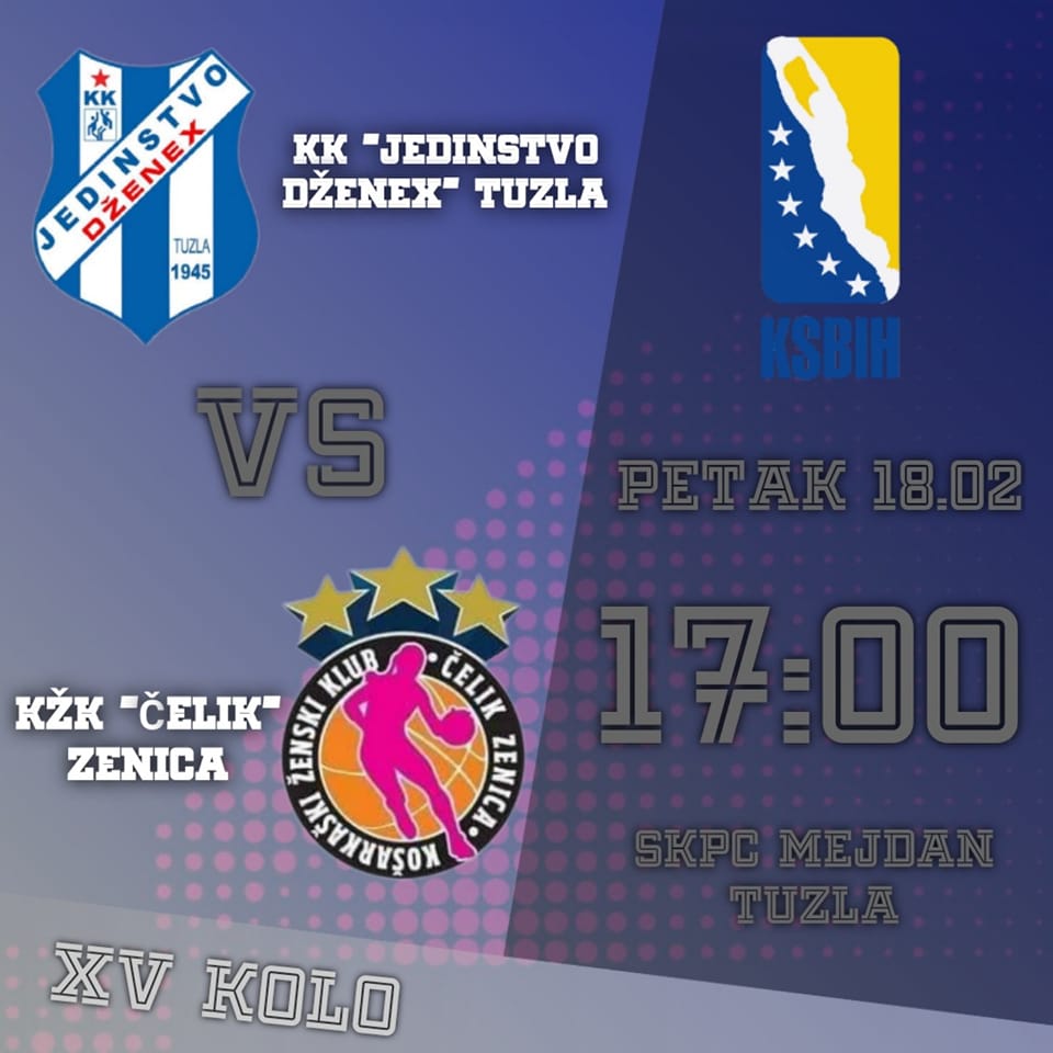 Od ovog petka do nedjelje na rasporedu su utakmice 15.kola Prvenstva BIH u košarci za žene. Ovo je četvrto kolo drugog dijela sezone, u kojem košarkašice KŽK Čelik gostuju ekipi ŽKK Jedinstvo Dženex iz Tuzle. Utakmica je na rasporedu ovog petka, 18.02.2022.godine od 17 sati u SKPC „Mejdan“ u Tuzli.
