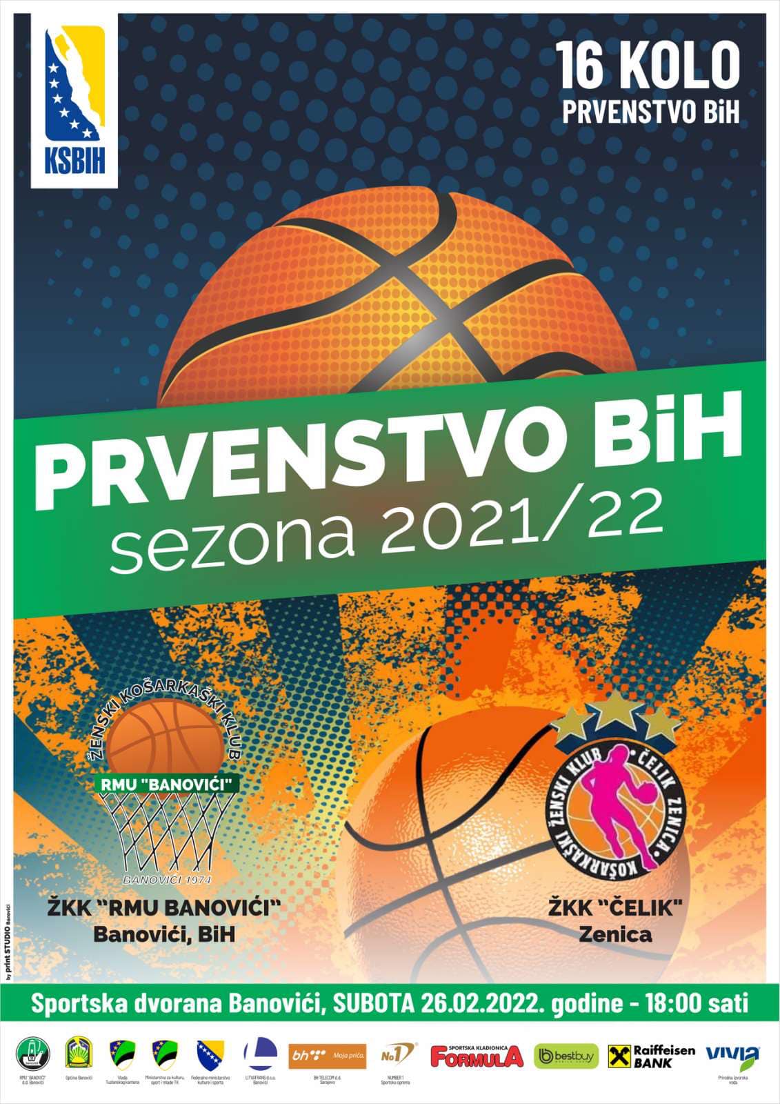 Od ovog petka do nedjelje na rasporedu su utakmice 16.kola Prvenstva BIH u košarci za žene. Jedna utakmica, Orlovi – Play Off, je odgođena za 09.3.2022. Ovo je peto kolo drugog dijela sezone, u kojem košarkašice KŽK Čelik gostuju ekipi ŽKK RMU Banovići. Utakmica je na rasporedu ove subote, 26.02.2022.godine od 18 sati u sportskoj dvorani u Banovićima.