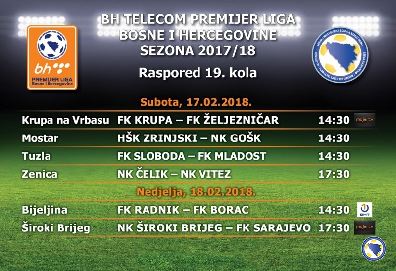 Donosimo kompletan raspored utakmica 19.kola (17./18./02.2018.god.), parovi – satnica, TV: