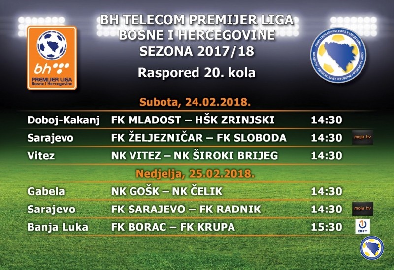 Donosimo kompletan raspored utakmica 20.kola (24./25./02.2018.god.), parovi – satnica, TV: