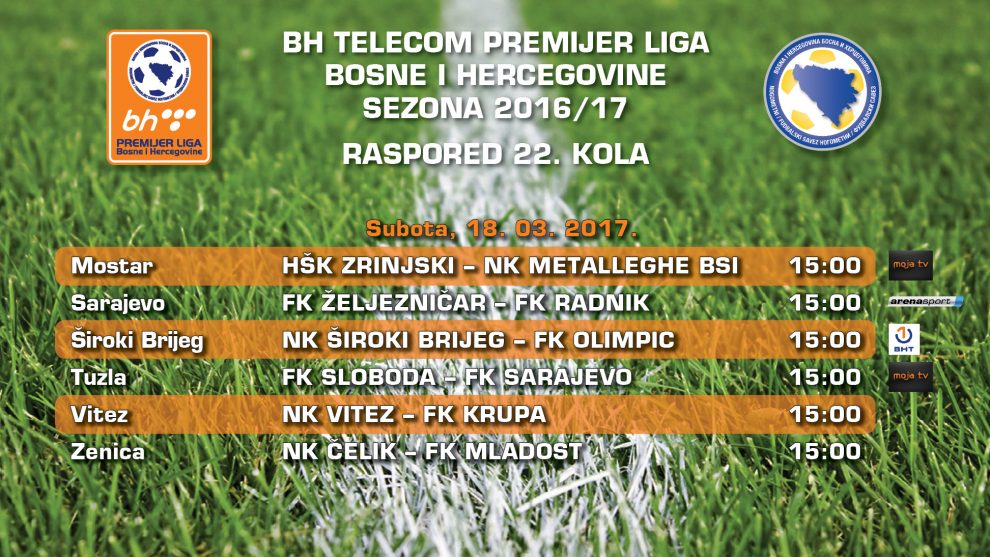 Donosimo kompletan raspored utakmica 22.kola (subota 18.03. 2017.g.), parovi, TV: