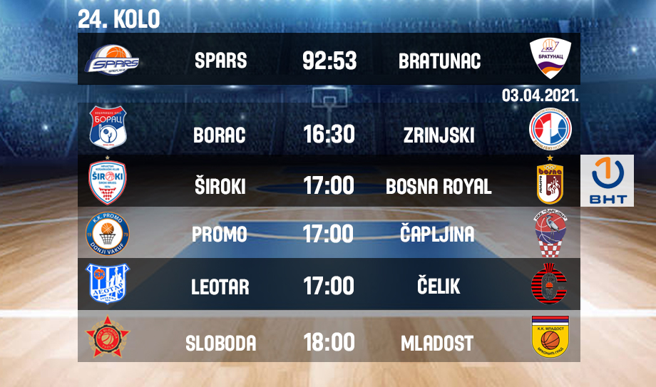 U prvoj utakmici 24. kola, odigranoj 31.03.2021., Sparsi su savladali Bratunac rezultatom 92:53.