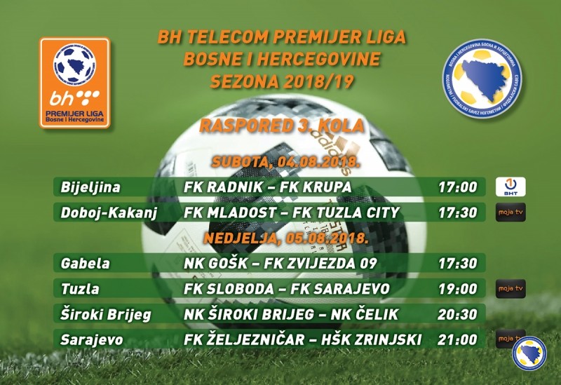 Donosimo kompletan raspored utakmica 3.kola (04./05. 8. 2018/.god.), parovi – satnica, TV prijenos: