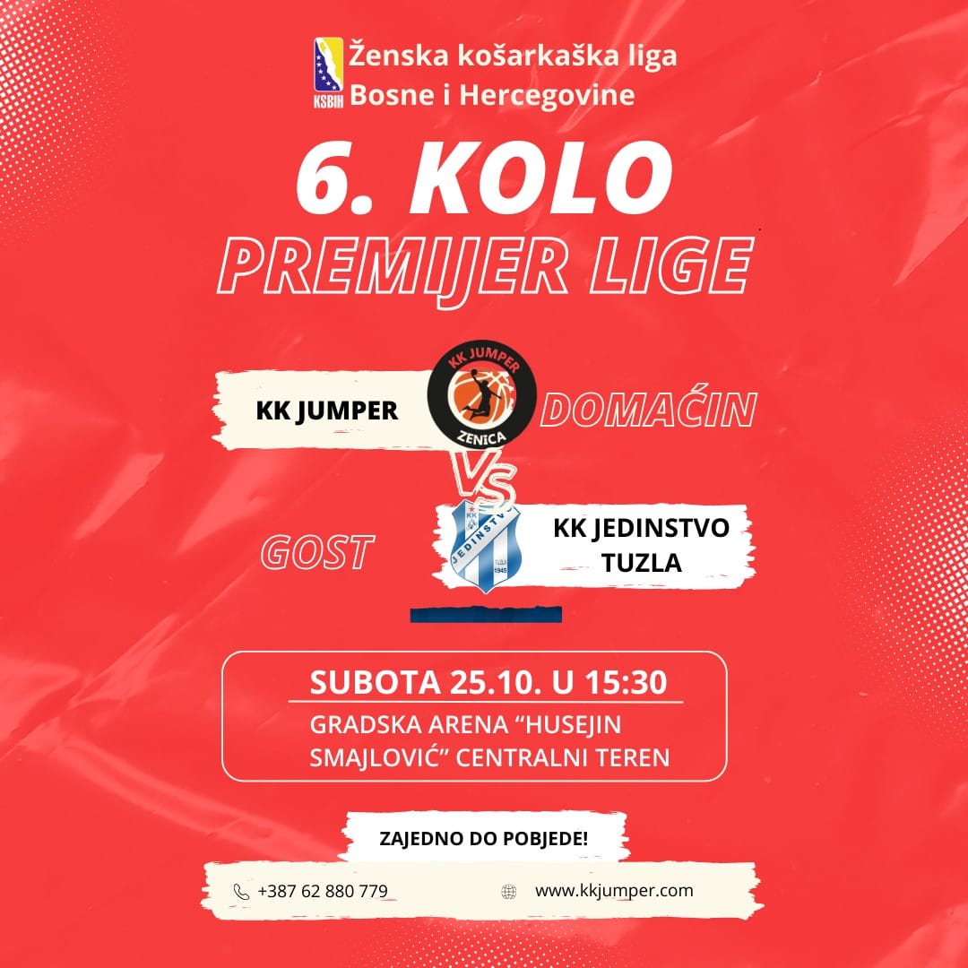 Zenički KK Jumper ove subote je domaćin ekipi ŽKK Jedinstvo iz Tuzle, koje se nalazi na 11.mjestu sa svih pet poraza, dok je Jumper na omjeru od tri pobjede i dva poraza, peto mjesto. Utakmica u Zenici igra se u subotu od 15,30 sati u gradskoj Areni „Husejin Smajlović“, centralni teren.