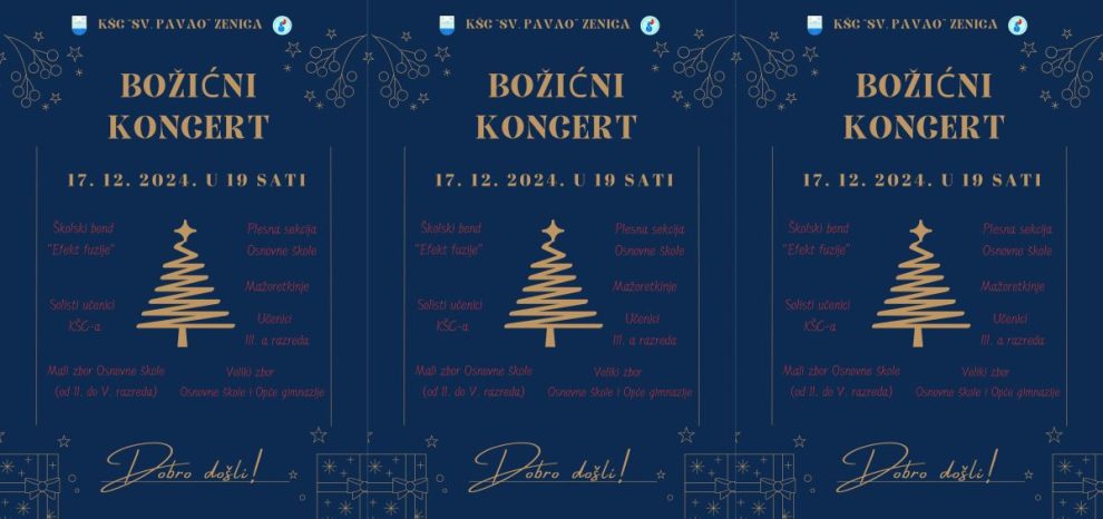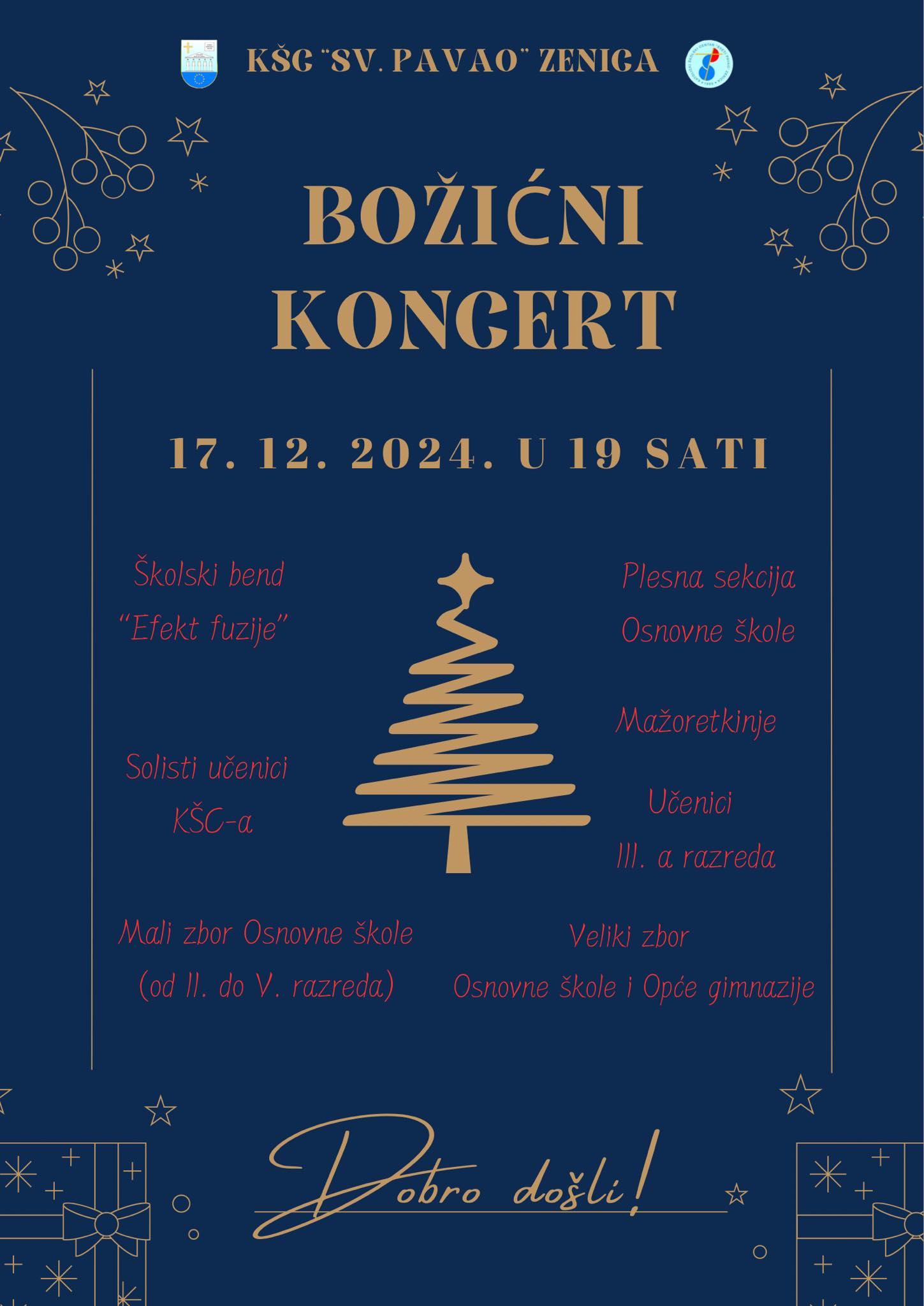 Katolički školski centar “Sveti Pavao” Zenica organizuje prigodan “Božićni koncert” na kojem nastupaju učenici osnovne škole i gimnazije ovog centra.