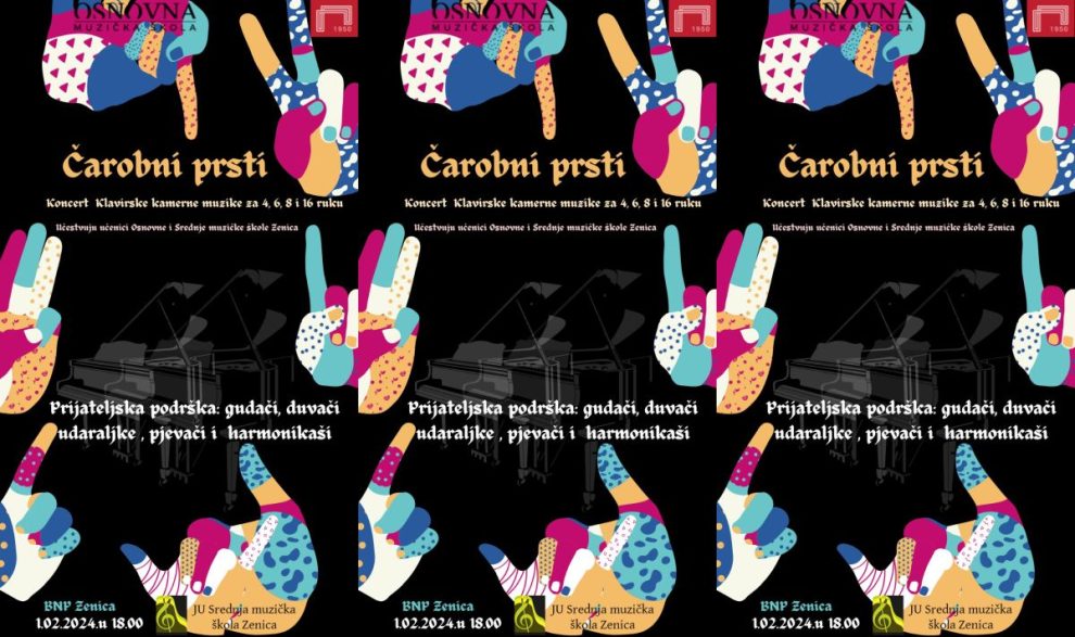 U sklopu 74. pozorišne i koncertne sezone Bosanskog narodnog pozorišta Zenica, a u organizaciji Kamernog simfonijskog orkestra Zenica, Osnovne muzičke škole Zenica, Srednje muzičke škole Zenica i Bosanskog narodnog pozorišta Zenica, bit će upriličen koncert klavirske kamerne muzike pod nazivom „Čarobni prsti“. Koncert je na repertoaru u četvrtak, 1. februara u 18 sati u Zeničkom pozorištu.