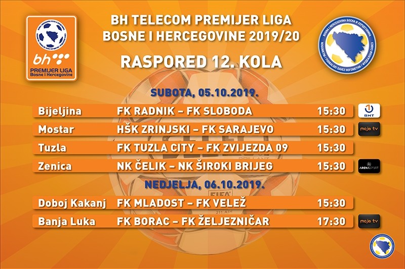 Donosimo raspored utakmica 12.kola (05./06.10.2019.god.), parovi, satnica –TV prijenos: