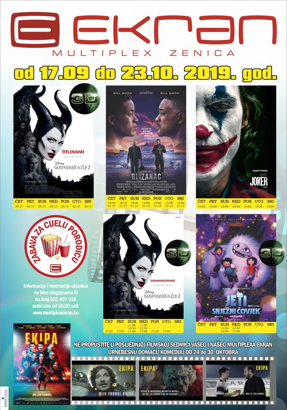 Također, na programu je i ovogodišnji hit film „Joker“, kao i film „Blizanci“. Za najmlađe, na programu je film „Jeti“, animirana avantura za cijelu porodicu.
