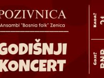 Godišnji koncert Ansambla Bosnia Folk Zenica bit će održan u nedjelju, 21. decembra 2025. godine, s početkom u 19:00 sati, u Bosanskom narodnom pozorištu u Zenici.