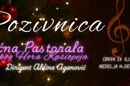 Gradski hor Kasiopeja Zenica organizuje svečani Adventski koncert pod nazivom „Božićna pastorala Gradskog hora Kasiopeja“, koji će biti održan 14. decembra 2025. godine u crkvi svetog Ilije proroka u Zenici.