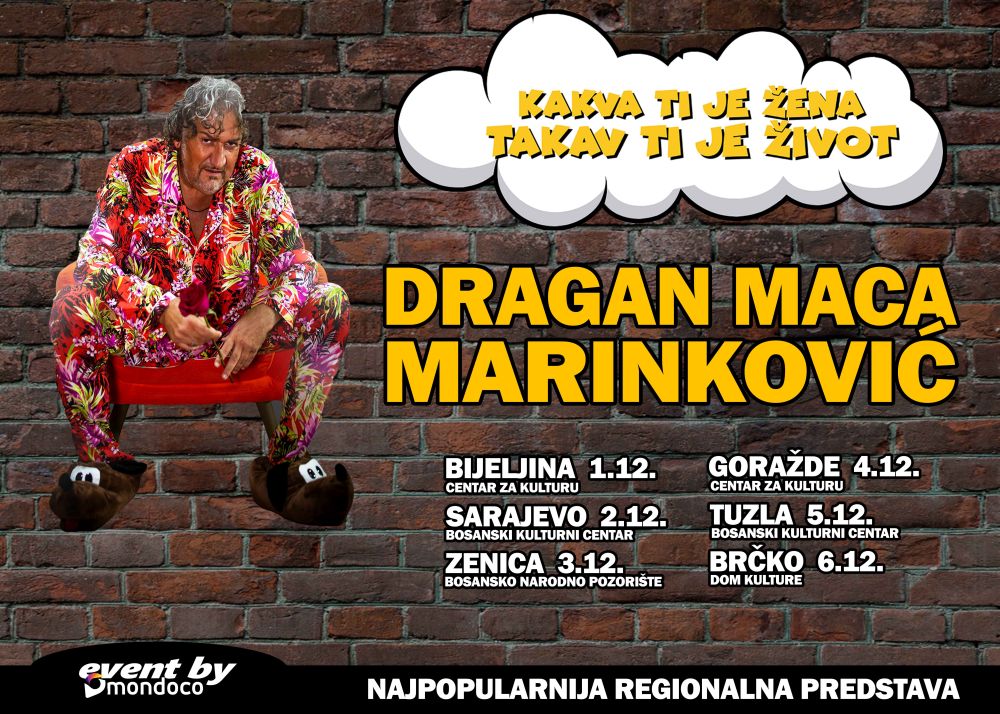 Hit komedija „Kakva ti je žena, takav ti je život“, u izvedbi Dragana Marinkovića Mace kreće početkom decembra mjeseca na mini BH turneju.