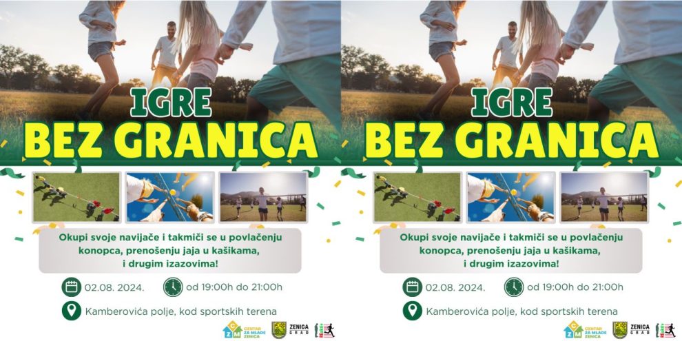 Centar za mlade Zenica najavljuje prve “Igre bez granica” u Zenici, takmičenje koje će se održati 2. augusta 2024. godine od 19:00 do 20:30 sati na Kamberovića polju, kod sportskih terena.
