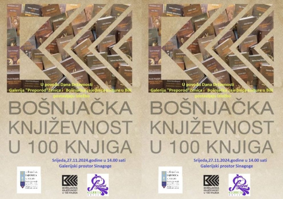 Galerija“ Preporod“ Zenica , u saradnji sa Bošnjačkom zajednicom kulture u BiH, postavlja izložbu edicija „Bošnjačka književnost u 100 knjiga , projekat koji se realizuje od 1995. godine.