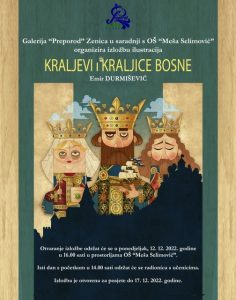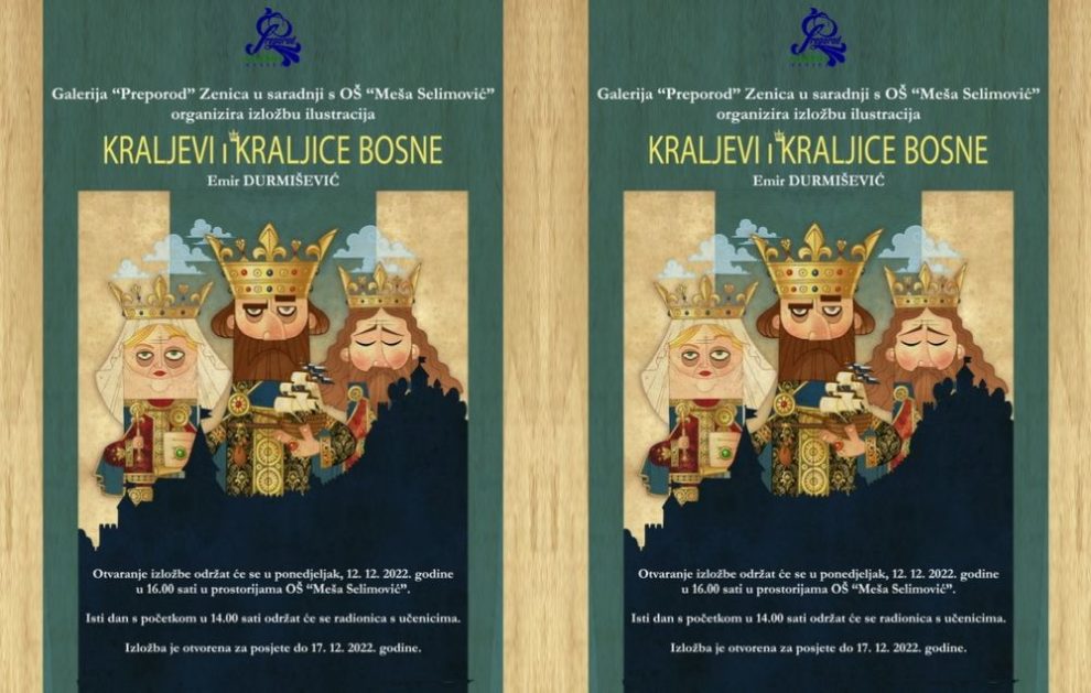 Pozivamo vas da prisustvujete otvaranju Izložbe ilustracija „Kraljevi i kraljice Bosne“ u ponedjeljak,12.12.2022.godine u 16.00 sati i Radionice za učenike u 14.00 sati u Osnovnoj školi „Meša Selimović“ Zenica.