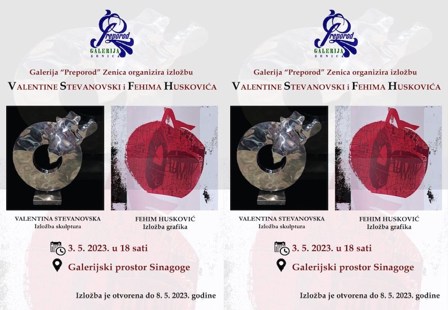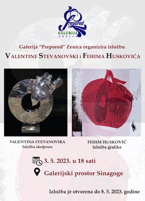 Galerija „Preporod“Zenica ,u okviru svojih planiranih aktivnosti i u okviru obilježavanja 120 godina Bošnjačke zajednice kulture „Preporod“ Bosne i Hercegovine,postavlja izložbu umjetnika iz Tetova ( Makedonija) , Valentina Stevanovska i Fehim Husković .Radi se o izložbi skluptura i grafika .