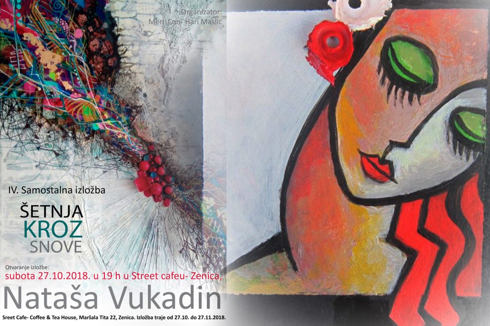 Najava izložbe: 4. samostalna izložba “Šetnja kroz snove” slikarice i dizajnerice Nataše Vukadin – U subotu 27.oktobra 2018 godine u 19h u prostoru kultnog Street Cafea u Zenici biće otvorena 4.samostalna izložba „Šetnja kroz snove“ slikarice i dizajnerice Nataše Vukadin.