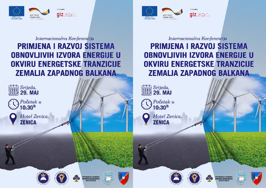U organizaciji Centra za efikasnost Mašinskog fakulteta Univerziteta u Zenici i partnera, u srijedu 29. maja 2024. godine u hotelu Zenica, sa početkom u 10,30 sati bit će održana međunarodna konferencija PRIMJENA I RAZVOJ SISTEMA OBNOVLJIVIH IZVORA ENERGIJE U OKVIRU ENERGETSKE TRANZICIJE ZEMALJA ZAPADNOG BALKANA.