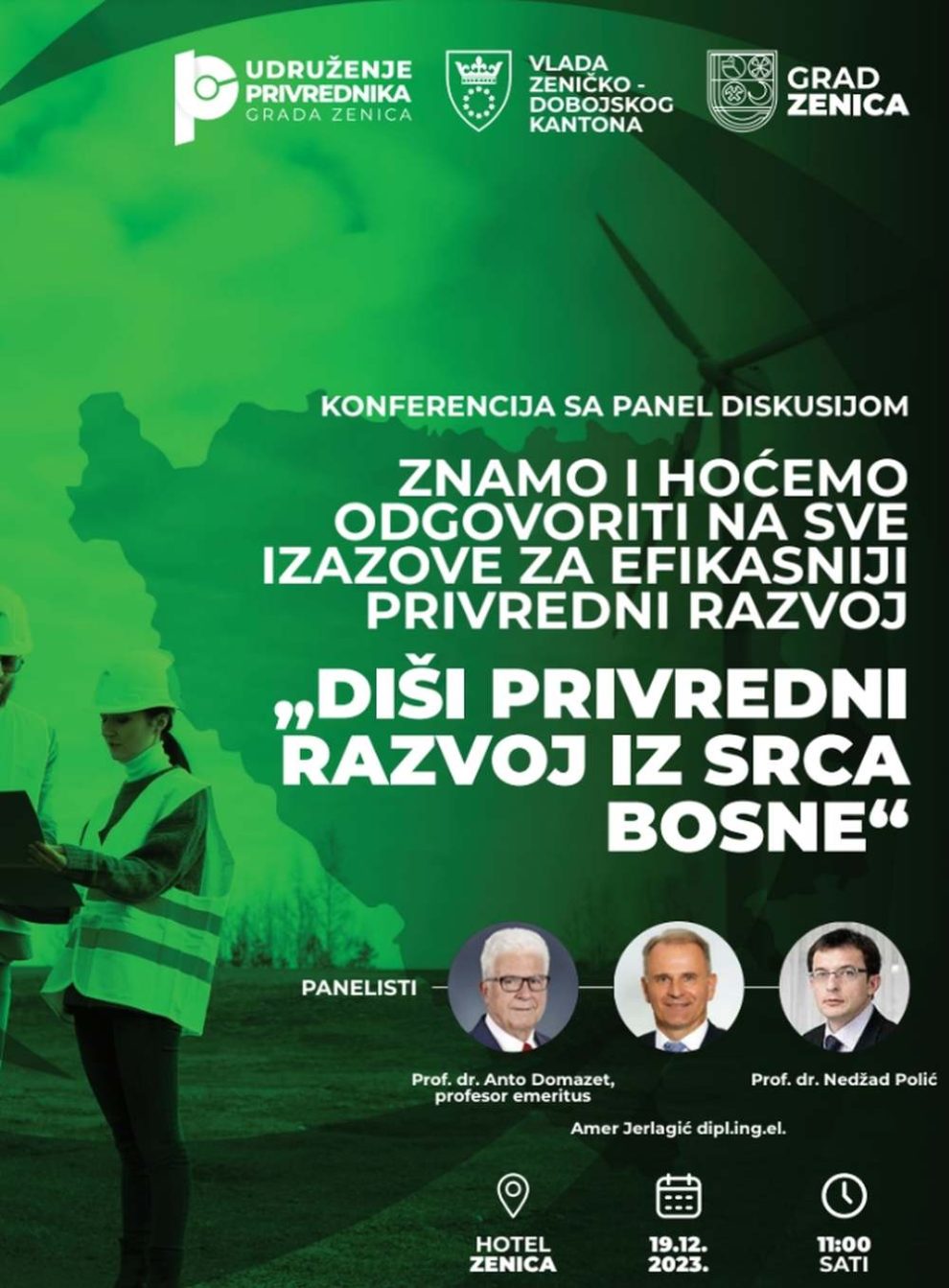 Udruženje privrednika Grada Zenica uz podršku Ministarstva za prostorno uređenje, promet i komunikacije i zaštitu okoline Zeničko-dobojskog kantona i Grada Zenica organizuje u utorak, 19. decembra konferenciju sa panel diskusijom na temu „Znamo i hoćemo odgovoriti na sve izazove za efikasniji privredni razvoj – Diši privredni razvoj iz srca Bosne“.