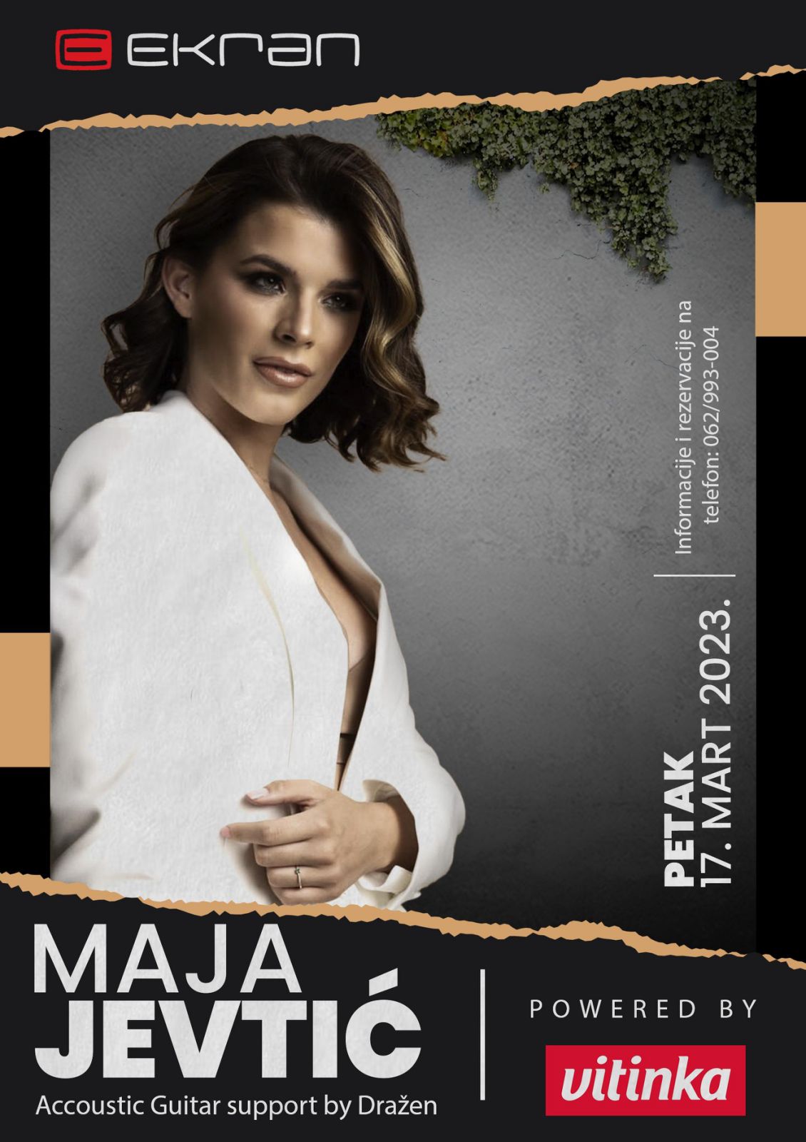 Dragi gosti, zadovoljstvo nam je najaviti gostovanje divne dame, predivnog glasa Maje Jevtić u Ekranu Zenica , 17.03.2023.godine.