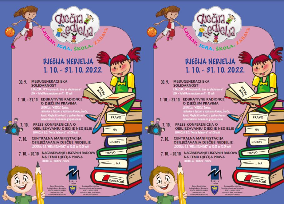 “Cijeli oktobar djeca će imati edukativne radionice posvećene njihovim pravima zahvaljujući projektu „Za našu bolju budućnost“, koji implementira “Medica” Zenica u partnerstvu sa Zavod KROG/Institute Circle iz Slovenije i CEI NAHLA iz Sarajeva uz finansijsku podršku Evropska unija u BiH. Ove godine osim Zenice, radit ćemo sa djecom iz općina Kakanj, Žepče, Vareš, Maglaj i Zavidovići, a u partnerstvu sa neformalnim i formalnim grupama žena. Za djecu smo pripiremili brojne aktivnosti, ali i nagrade. Za svako dijete bit će obezbijeđeni prigodni pokloni\paketići“, poručila je dr.sci Sabiha Husić, direktorica „Medice“ Zenica.