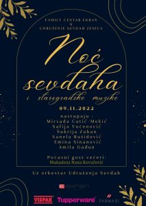 Noć sevdaha i starogradske muzike u organizaciji Udruženja Sevdah Zenica sa nevjerovatnim gostima, našim sugrađanima i zaljubljenicima u sevdalinku i muziku starih vremena.