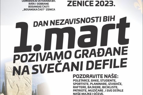 Grad Zenica, Vlada Zeničko-dobojskog kantona, Udruženje veterana bh. rata i odbrane Bosanske časti i ostala boračka udruženja, organizatori su obilježavanja 1. marta – Dana nezavisnosti Bosne i Hercegovine. Višednevni program počinje u ponedjeljak, 27. februara akcijom darivanja krvi u Kantonalnoj bolnici Zenica. Dan kasnije, u utorak, 28. februara planirana je priredba u Osnovnoj školi Hasan Kikić u Tetovu gdje će biti nagrađena tri najbolja učenika. Isti dan od 13 sati u Muzeju grada biće otvorena izložba fotografija. Centralni dio planiran je za srijedu i to od 10 sati na Spomen kosturnici Papirna gdje će biti obraćanje i polaganje cvijeća, zatim slijedi defile ulicama grada sve do Spomen obilježja Kameni spavač gdje je planiran centralni dio manifestacije. Uz obraćanje zvanica planiran je i kulturno-zabavni program.