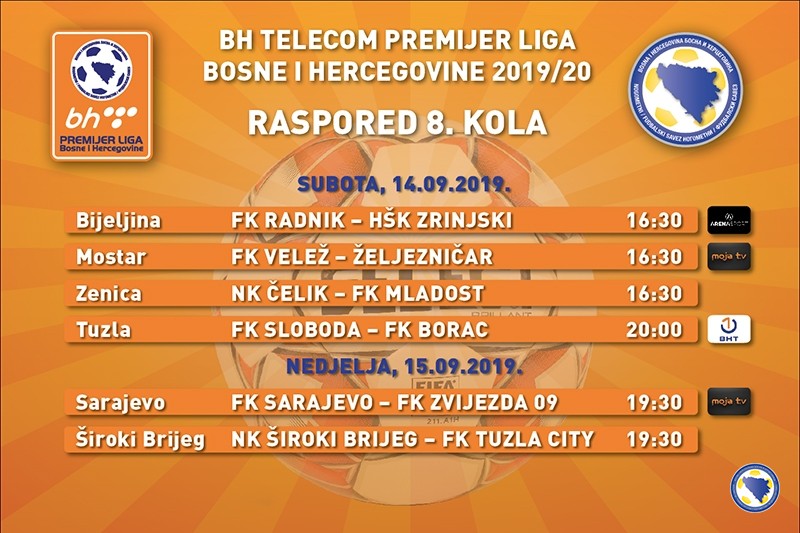 Donosimo raspored utakmica 8.kola (14./15.9.2019.god.), satnica – parovi -TV: