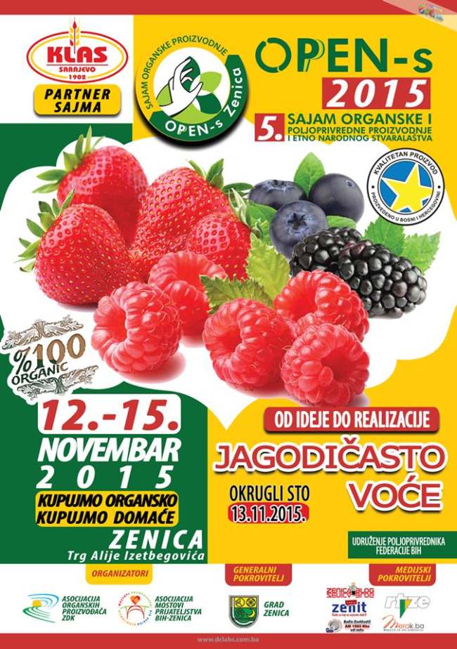 Peti Oppen-s u Zenici ! U Zenici će se od od 12. do 15. novembra održati 5. Sajam OPPEN-s 2015 na lokaciji Trg Alije Izetbegovića u centru Zenice. Organizacioni odbor 5.sajma OPEN-s sastavljen je od predstavnika Udruženja organskih i poljoprivrednih proizvođača ZDK i Asocijacije Mostovi Prijateljstva BiH-Zenica.