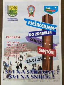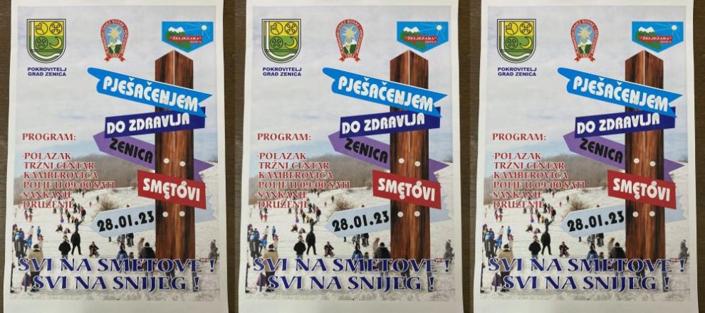 PD “Željezara” Zenica pod pokroviteljstvom Grada Zenica , 28.01.2023.godine (subota) organizuje tradicionalnu manifestaciju “PJEŠAČENJEM DO ZDRAVLJA- SVI NA SMETOVE- SVI NA SNIJEG”.