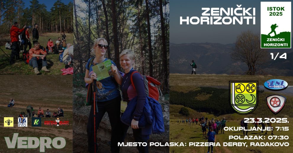 NAJAVA: Planinarska tura “Zenički horizonti-ISTOK”-Zenički Horizonti su priča o 4 strane svijeta, o avanturi za sve ljude koji vole prirodu i sve ono što im ona nudi. To je prilika da se obučete ‘nove’ gojzerice i učine prvi koraci u planinarstvu.